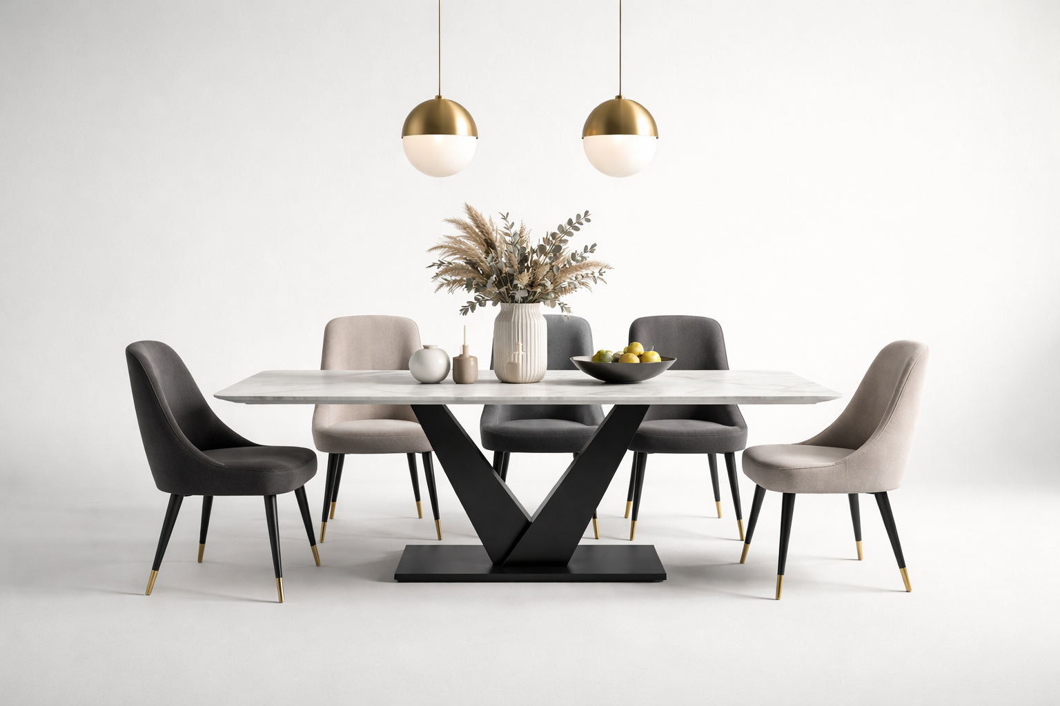 Mesa de jantar de marmore e metal modelo AVE